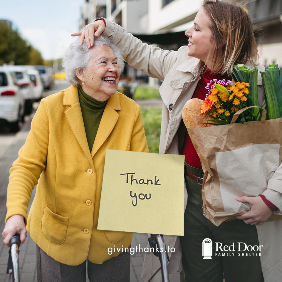 Join us in giving thanks for someone important in your life, someone who needs to hear it. Make a donation to Red Door in their honour and we’ll send them a message of thanks from you.